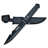 ナイフ本体とシースが黒で統一され、シンプルながらも存在感のあるデザインです。ABSハンドルは軽く、濡れた手でも滑りにくいのが特徴です。