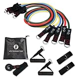 【日本国内メーカー】uFit Training Tube トレーニング チューブ 強度別5本セット 最大 68.2kg 強力 プロアスリート 水谷隼 愛用 ハンドル ドアアンカー 足首バンド 収納袋 天然ゴム 使い方動画